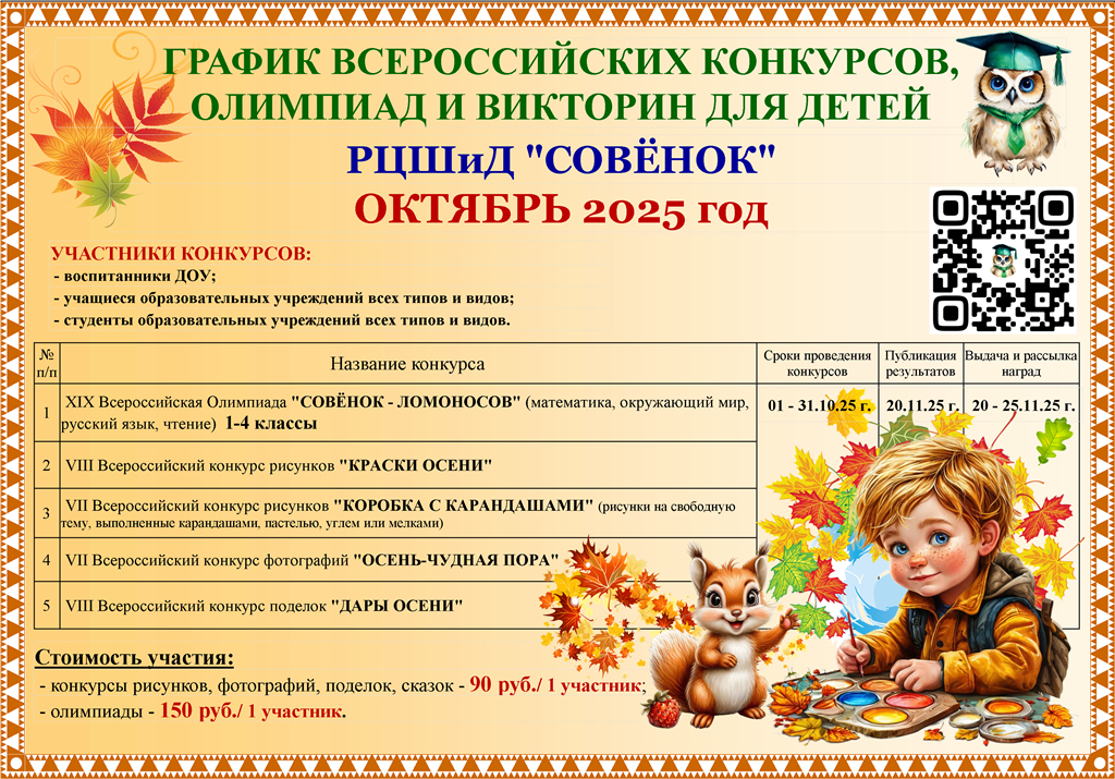 Подведены ИТОГИ КОНКУРСОВ для ДЕТЕЙ за СЕНТЯБРЬ 2025 года.