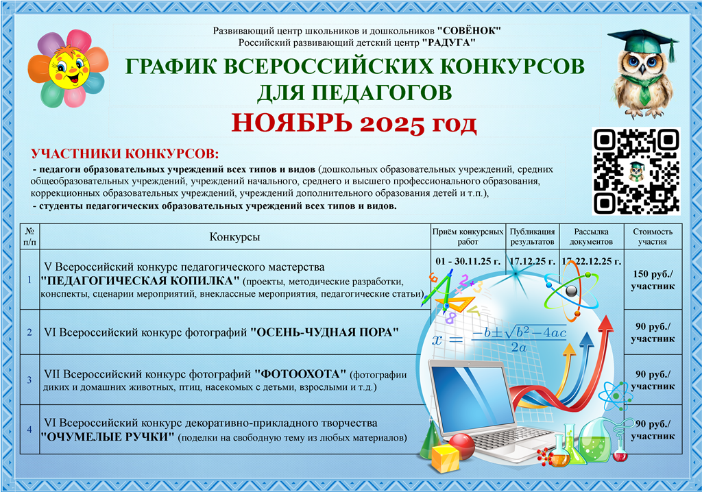ГРАФИК КОНКУРСОВ И КОНФЕРЕНЦИЙ (с изданием сборников авторских материалов) для ПЕДАГОГОВ на 2025-2026 уч.год >> СКАЧАТЬ