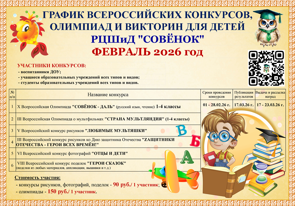 ГРАФИК КОНКУРСОВ И ОЛИМПИАД для ДЕТЕЙ на 2025-2026 уч.год >> СКАЧАТЬ